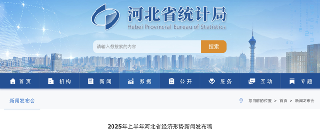 7月22日,河北省統計局網站發布《2025年上半年河北省經濟形勢新聞發布稿》一文。