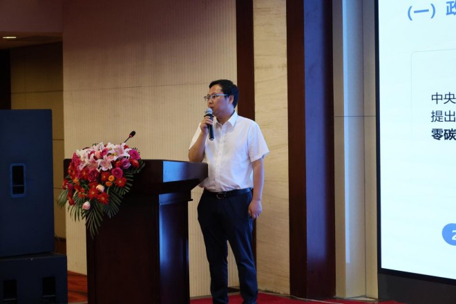 江蘇南大碳中和科技有限公司董事長孫帥,介紹零碳園區的國內外政策背景、公司基本情況,分享外商投資FDI進出口零碳園區建設經驗以及國內零碳智慧物流園區、風光儲充放新能源系統案例,最后介紹了AI能碳管理系統及可以為產業方和政府提供的服務和價值。