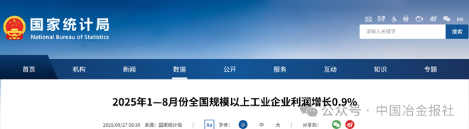 9月27日,國家統計局公布了2025年1—8月份全國規模以上工業企業利潤數據。