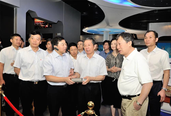2019年7月20日,中國航空發(fā)動機集團有限公司董事長曹建國、中國工程院院士向巧一行來大冶特鋼考察。中信泰富特鋼黨委書記、董事長錢剛,中國工程院院士劉玠、大冶特鋼總經(jīng)理謝文新等陪同。(特約通訊員 朱友松 攝)