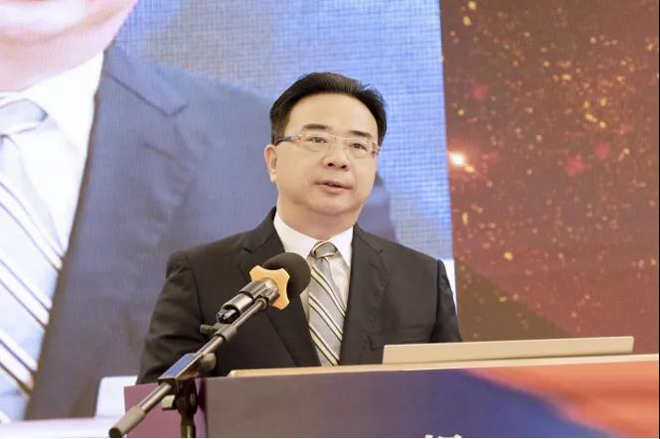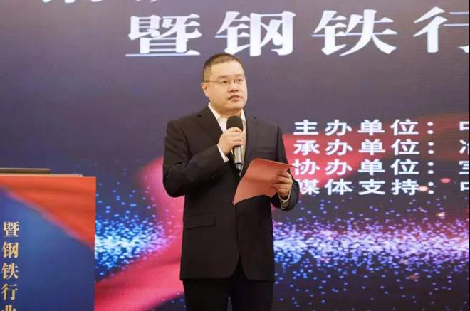 圖為中國鋼鐵工業(yè)協(xié)會(huì)黨委副書記姜維致辭