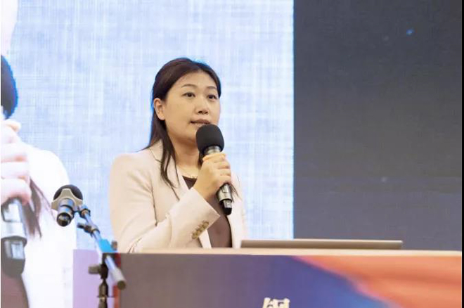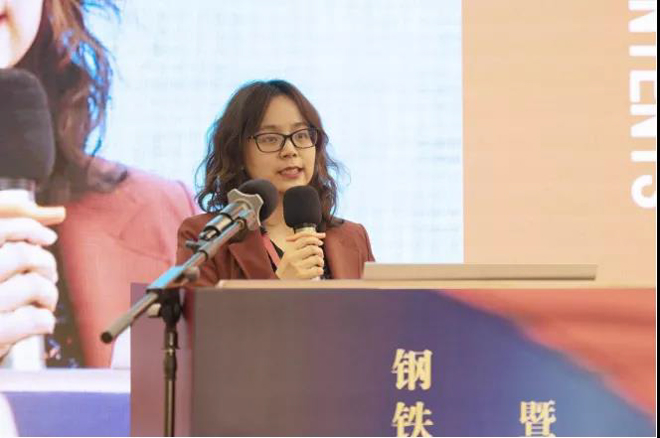 圖為冶金工業(yè)信息標(biāo)準(zhǔn)研究院正高工/全國鋼標(biāo)委冶金智能制造標(biāo)準(zhǔn)化工作組秘書長劉斕冰作《鋼鐵領(lǐng)域智能制造標(biāo)準(zhǔn)化工作》報(bào)告