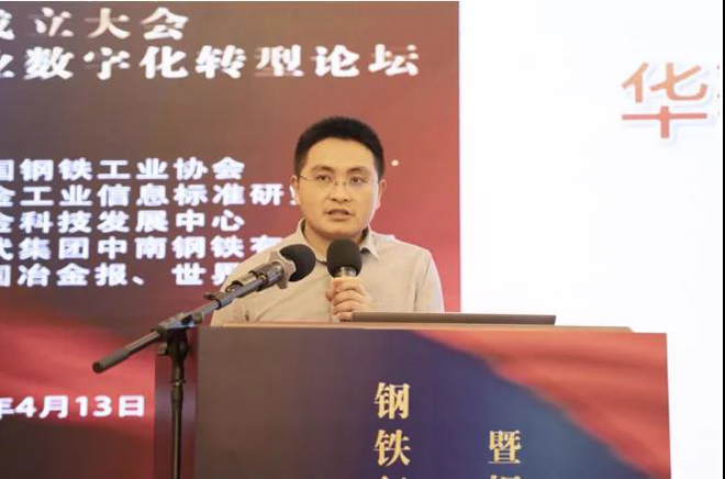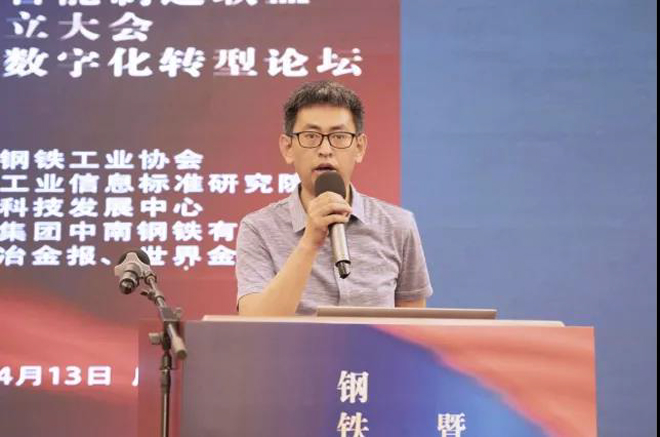 圖為中國鋼鐵工業(yè)協(xié)會(huì)副秘書長黃導(dǎo)宣布鋼鐵行業(yè)智能制造聯(lián)盟成立