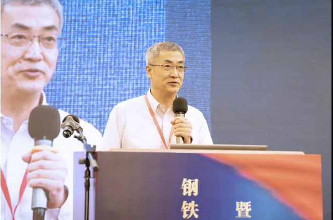 圖為寶武集團(tuán)中南鋼鐵有限公司總工程師盧學(xué)云作報(bào)告