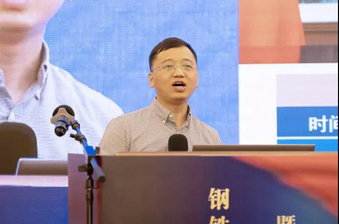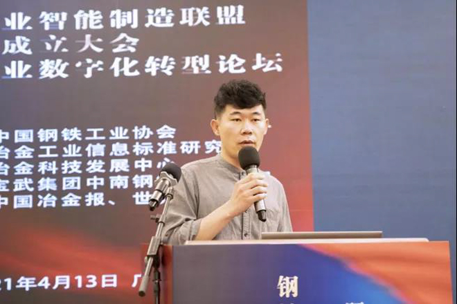 圖為中天鋼鐵總裁助理魏巍作《“5G+工業(yè)互聯(lián)網(wǎng)”的優(yōu)特鋼“智造”項(xiàng)目》報(bào)告