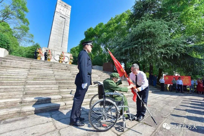 當已經90多歲高齡、新中國成立前入黨的老黨員、抗日老戰士、萍安鋼鐵離休干部朱江同志,將活動主題旗授予遼寧方大集團董事、副總裁,方大鋼鐵董事長,萍安鋼鐵董事長黃智華同志時,全場人員無不動容,老人的眼角噙著激動的淚花。