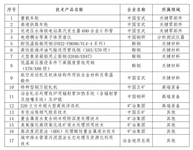其中冶金行業(yè)相關(guān)技術(shù)產(chǎn)品名單整理如下:
