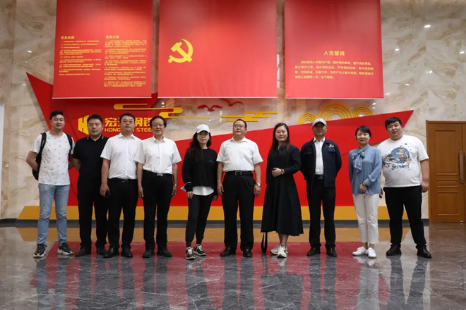 宏興鋼鐵總經理賈俊龍、黨委書記劉曉光;《鋼鐵脊梁》紀錄片總導演劉娜;中國鋼鐵工業(yè)協(xié)會副秘書長,中國冶金報社黨委書記、社長陳玉千;河北省冶金行業(yè)協(xié)會顧問、河北省政府參事室特約研究員王大勇;《鋼鐵脊梁》分集導演艾沙江·熱合曼江;中國冶金報社社長助理、經濟發(fā)展中心主任陳曉莉,經濟發(fā)展中心副主任、鋼鐵部主任劉加軍,新聞中心副主任、撰稿負責人鄭潔等進行了調研交流。宏興鋼鐵相關部門人員參加了調研。
