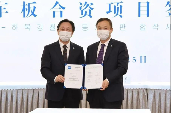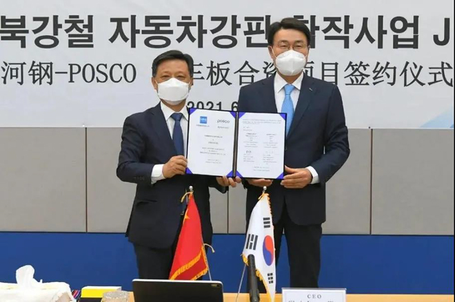6月25日,河鋼與POSCO(浦項)以視頻會議形式舉行了河鋼—POSCO汽車板合資項目簽約儀式,正式實施年產(chǎn)能達135萬噸的高端汽車面板項目。