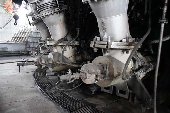 走進晉南鋼鐵2號高爐平臺,記者看到高爐每一個風口都有兩個噴吹副管。
