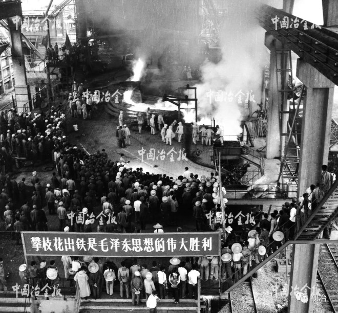 上世紀 60 年代,黨中央為改變我國鋼鐵工業布局、開發攀西資源、建設大三線做出重大戰略決策——建設攀鋼,毛澤東親自決策,周恩來親自指揮,鄧小平親自選址。圖為1970年7月1日攀鋼一號高爐出鐵時場景。(孟祥林 供圖)
