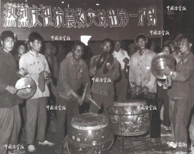 1976年7月28日,唐山發生歷史罕見的大地震,唐鋼(現屬于河鋼集團)設備遭到嚴重破壞,資產損失三分之一。唐鋼職工僅用28天就煉出了“抗震志氣鋼”。圖為唐鋼職工慶祝抗震救災煉出第一爐鋼場景。(賈成寧 供圖)