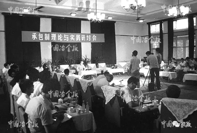 1979年,首都鋼鐵公司開始實行上交利潤包干。1979年、1980年該公司實行一年一包,1981年實行基數包死,超包全留。該公司從1982年起,實行上交利潤遞增包干,成為當時國企改革的先行者。在企業內部,首鋼實行了責、權、利為一體的經濟責任制。圖為1987年8月首鋼承包制理論與實踐研討會。(本報資料圖片)