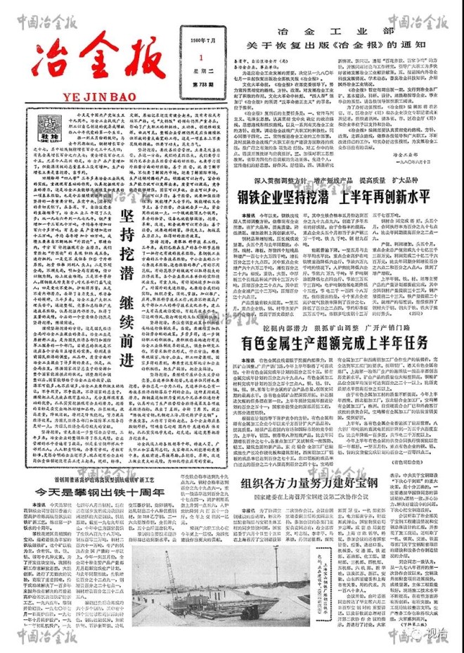 1980年3月5日,當時的冶金工業部向國家經委提交了擬于1980年7月1日恢復出版《冶金報》的請示報告。圖為1980年7月1日,復刊后第一期《冶金報》正式出版。(本報資料圖片)