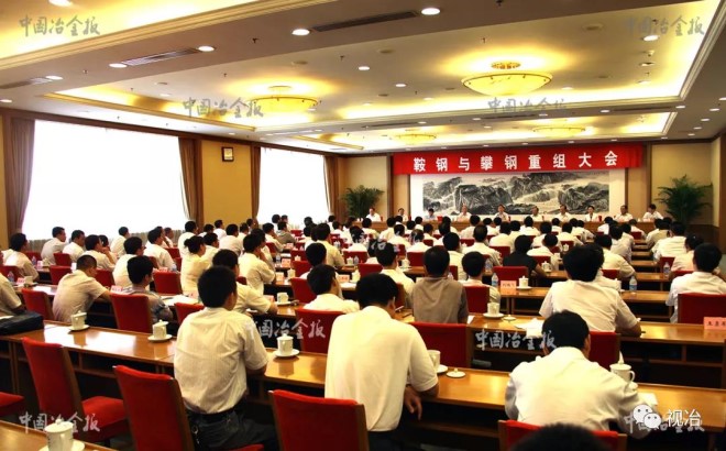 2010年7月28日,鞍鋼與攀鋼重組大會在北京舉行。圖為會議現場。(靳波 攝)