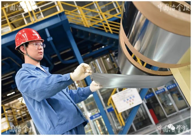 2018年8月份,太鋼研制出了“手撕鋼”——不銹鋼精密箔材,厚度僅有0.02毫米,寬度達到600毫米。2020年9月8日,太鋼又在箔材薄化上實現重大突破,更薄“手撕鋼”面世,厚度僅0.015毫米,能用于新能源汽車電池。圖為太鋼精密帶鋼公司工作人員在展示“手撕鋼”。(王旭宏 攝)