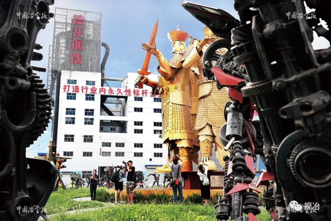 2020年9月4日,德龍鋼鐵有限公司一次性通過了國家4A級旅游景區的質量評審,成為中國第一家在生產且達到國家4A級旅游景區標準的鋼廠。圖為游覽者在德龍鋼鐵廠區“金剛園”參觀拍攝。(顧學超 攝)