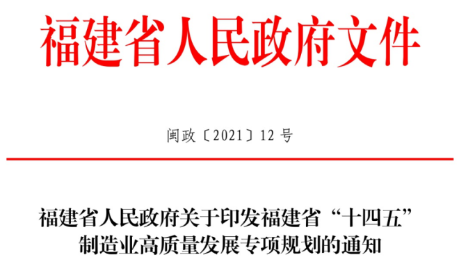 近日,福建省人民政府發布了《福建省人民政府關于印發福建省“十四五”制造業高質量發展專項規劃》(以下簡稱“《規劃》”)。
