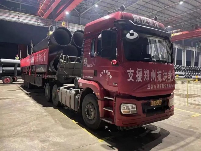 此外,7月22日,新興鑄管鄭州銷售分公司接到鄭州自來水控股有限公司急需應(yīng)急供水管材任務(wù),立刻開展離心球墨鑄鐵管調(diào)配工作,聯(lián)系就近生產(chǎn)基地連夜發(fā)運所需管材。22日晚21點,鑄管管材從河北武安發(fā)運。