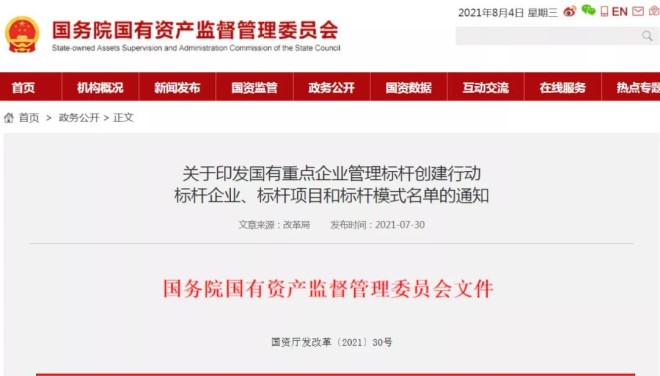 近日,國資委發布了《關于印發國有重點企業管理標桿創建行動標桿企業、標桿項目和標桿模式名單的通知》。按照對標世界一流管理提升行動工作部署,國務院國資委組織國有重點企業認真開展管理標桿企業、標桿項目和標桿模式(以下簡稱“三個標桿”)創建行動。經過企業申報、專家評審、征求意見等環節,現已確定“三個標桿”名單。
