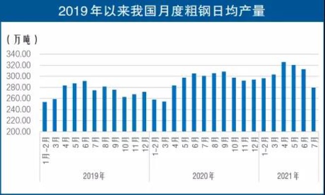 鋼鐵行業落實減產行動自7月份開始已經有了實質性動作,減產效果也十分明顯。自7月份以來,山東、河北、江蘇、遼寧、江西等多個產鋼大省都先后明確要確保2021年粗鋼產量不增長。國家統計局數據顯示,今年7月份,我國粗鋼產量為8679萬噸,同比減少8.4%,而在6月份,我國粗鋼產量同比增速依然達到了11.8%。這相當于7月份我國粗鋼產量來了一個“急剎車”,增速降幅超過20個百分點。