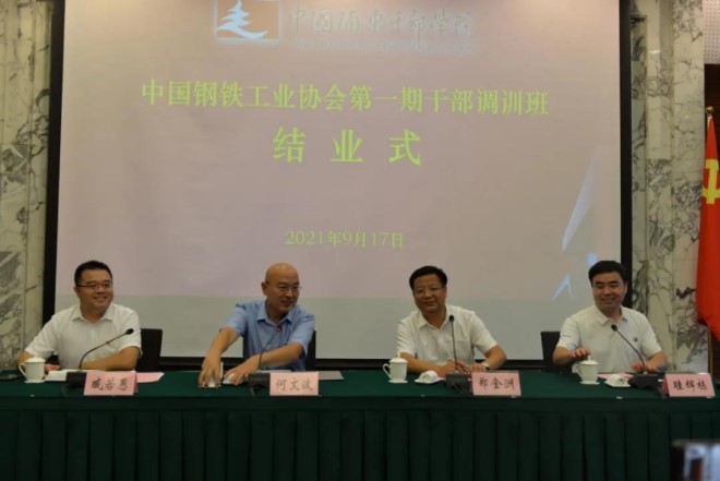 9月17日,中國鋼鐵工業(yè)協會第一期干部調訓班在中國浦東干部學院完成全部課程,順利結業(yè)。中國鋼鐵工業(yè)協會黨委書記、執(zhí)行會長何文波,中國浦東干部學院副院長鄭金洲、對外交流與培訓開發(fā)部項目負責人眭輝棟出席結業(yè)式,鋼協組織人事部(黨委辦公室)副主任(主持工作)臧若愚主持會議。