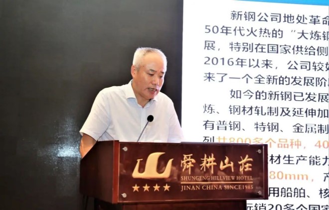 圖為德龍鋼鐵、新天鋼副總裁張紀星交流發言。