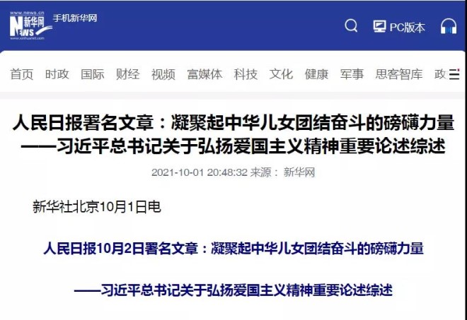 習(xí)近平總書(shū)記強(qiáng)調(diào):“愛(ài)國(guó)主義是激勵(lì)中國(guó)人民維護(hù)民族獨(dú)立和民族尊嚴(yán)、在歷史洪流中奮勇向前的強(qiáng)大精神動(dòng)力,是驅(qū)動(dòng)中華民族這艘航船乘風(fēng)破浪、奮勇前行的強(qiáng)勁引擎,是引領(lǐng)中國(guó)人民和中華民族迸發(fā)排山倒海的歷史偉力、戰(zhàn)勝前進(jìn)道路上一切艱難險(xiǎn)阻的壯麗旗幟!”