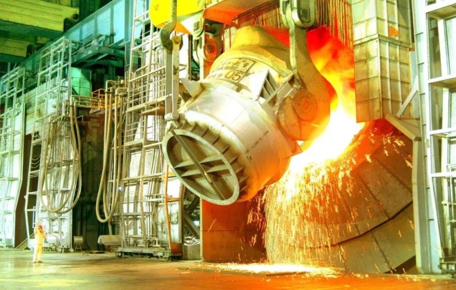 圖為鞍鋼股份煉鋼總廠兌鐵水。(鞍鋼供圖)