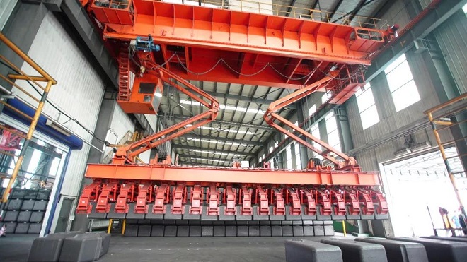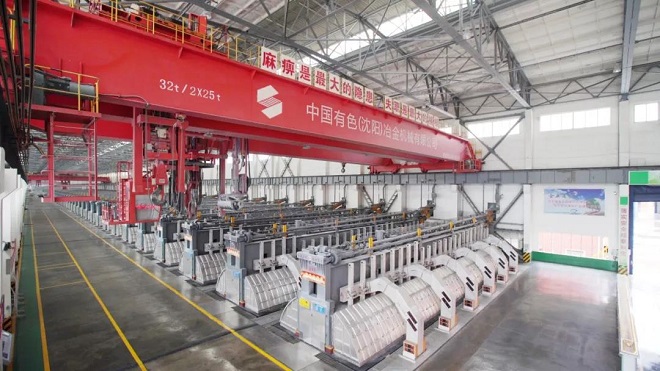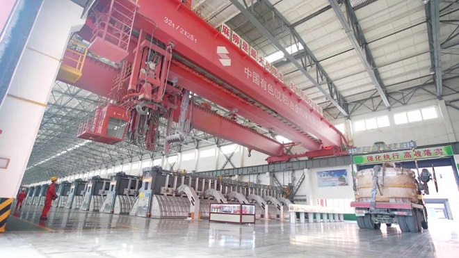 圖為“沈冶機(jī)械”生產(chǎn)的鋁電解多功能機(jī)組在用戶現(xiàn)場(chǎng)工作中