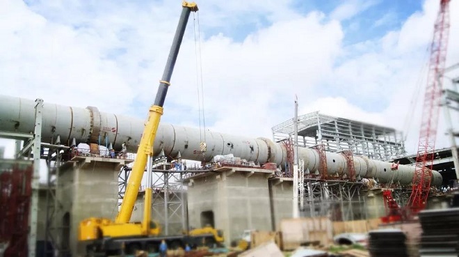 圖為“沈冶機(jī)械”生產(chǎn)的緬甸達(dá)貢山鎳礦項(xiàng)目回轉(zhuǎn)窯在用戶現(xiàn)場(chǎng)安裝調(diào)試中