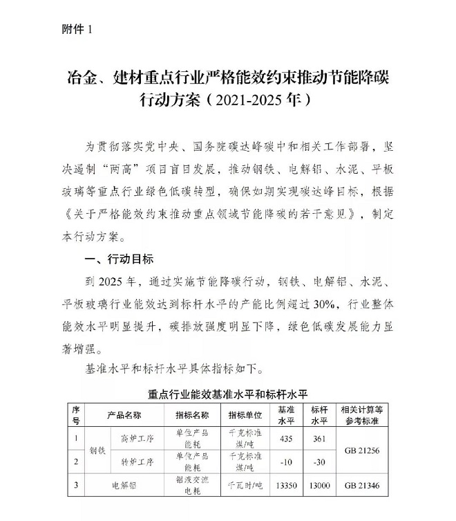 ▼冶金、建材重點行業嚴格能效約束推動節能降碳行動方案(2021-2025年)