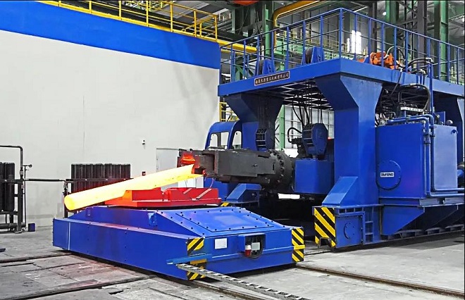 圖為張宣高科特種材料研究制造公司正在生產(chǎn)用于高精尖領(lǐng)域的大規(guī)格熱作模具鋼H13鍛棒。