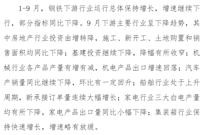 1-9月主要用鋼行業總體保持增長,部分指標同比下降