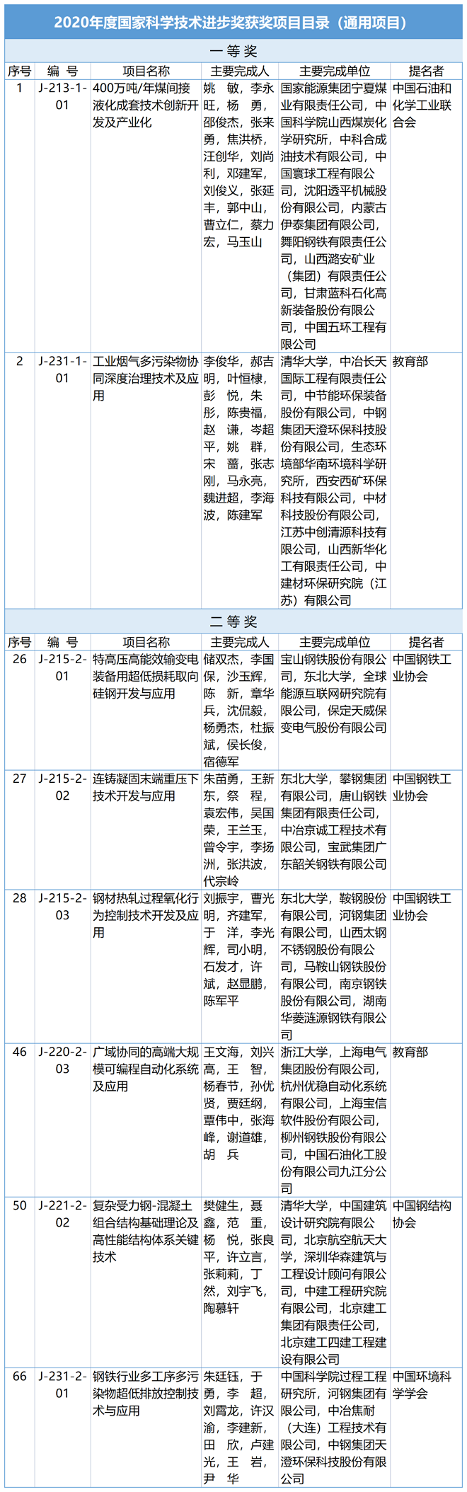 祝賀!鋼鐵行業這些項目榮獲2020年度國家科學技術獎