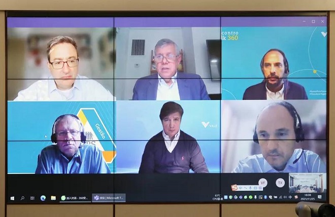 11月25日,中國鋼鐵工業協會黨委書記、執行會長何文波與淡水河谷首席執行官柏安鐸(Eduardo Bartolomeo)、鐵礦石業務執行副總裁司馬盛(Marcelo Spinelli)等舉行視頻會議。