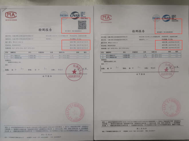 中碳能投科技(北京)有限公司篡改內(nèi)蒙古鄂爾多斯高新材料有限公司檢測(cè)報(bào)告(左圖為真實(shí)報(bào)告,右圖為篡改報(bào)告)