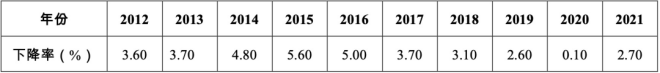 統(tǒng)計(jì)2005年以來我國(guó)國(guó)內(nèi)生產(chǎn)總值和能源消耗總量數(shù)據(jù),變化趨勢(shì)如圖1所示。2005年以來,我國(guó)經(jīng)濟(jì)保持平穩(wěn)較快發(fā)展,GDP和能源消費(fèi)總量均呈現(xiàn)增長(zhǎng)態(tài)勢(shì),但由于“節(jié)能減排”、“能耗雙控”政策的落實(shí)和持續(xù)細(xì)化完善,我國(guó)能源消耗總量得到有效控制,從發(fā)展形勢(shì)看,能源消費(fèi)總量的增速明顯遠(yuǎn)低于同期GDP的增長(zhǎng)幅度。2021年我國(guó)國(guó)內(nèi)生產(chǎn)總值和能源消耗總量分別為114.4萬億和52.4萬tce。以2005年數(shù)據(jù)為基準(zhǔn),國(guó)內(nèi)生產(chǎn)總值增長(zhǎng)幅度達(dá)到510.5%(現(xiàn)價(jià)),能源消耗總量的增長(zhǎng)幅度僅為100.5%,實(shí)現(xiàn)以較低的能源消費(fèi)增長(zhǎng)支持較高的經(jīng)濟(jì)增長(zhǎng)。依據(jù)國(guó)家統(tǒng)計(jì)局新聞發(fā)布和統(tǒng)計(jì)公報(bào)的數(shù)據(jù),統(tǒng)計(jì)2012-2021年單位GDP能耗較上年下降率,詳情見下表1。可以發(fā)現(xiàn),下降空間雖然逐步收窄,但我國(guó)近十年來單位GDP能耗一直處于平穩(wěn)下降態(tài)勢(shì)。