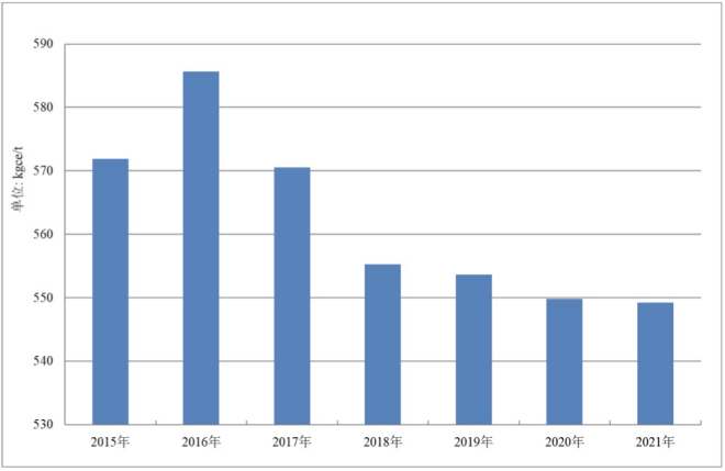 依據(jù)中國(guó)鋼鐵工業(yè)協(xié)會(huì)公布數(shù)據(jù),2021年全國(guó)重點(diǎn)大中型鋼鐵企業(yè)噸鋼綜合能耗為549.24千克標(biāo)準(zhǔn)煤,較2020年下降0.59千克標(biāo)準(zhǔn)煤,同比下降幅度為0.11%,和2015年相比,噸鋼綜合能耗下降比例達(dá)到4%。