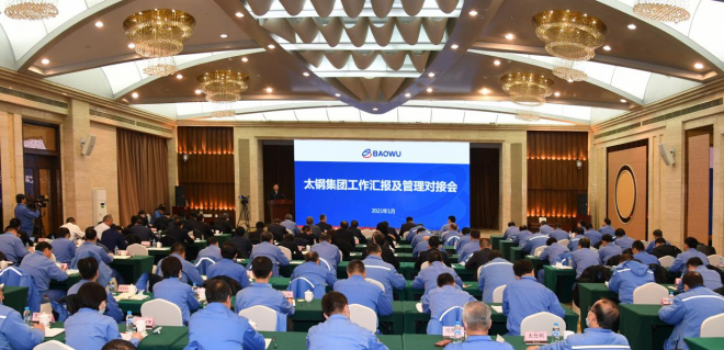 2021年1月5日,元旦剛過沒幾天,在太鋼正式加入中國寶武后的第8個工作日,中國寶武黨委書記、董事長陳德榮,總經理、黨委副書記胡望明帶領相關部門人員奔赴太鋼,組織召開了太鋼干部大會和管理對接會。