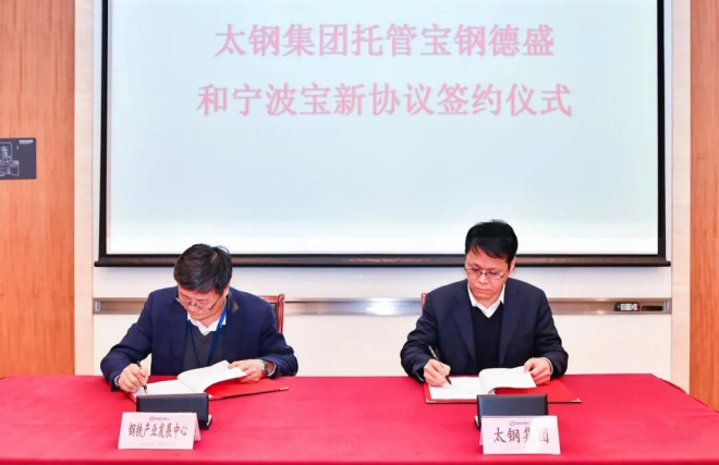 2020年12月30日,太鋼托管寶鋼德盛和寧波寶新協議簽約儀式在上海寶武大廈舉行。作為被托管單位,寶鋼德盛和寧波寶新對這位新“家長”十分認可:“太鋼是全球不銹鋼行業領軍企業,擁有先進的技術裝備、優秀的人才隊伍和雄厚的研發實力,我們要主動融入太鋼。”