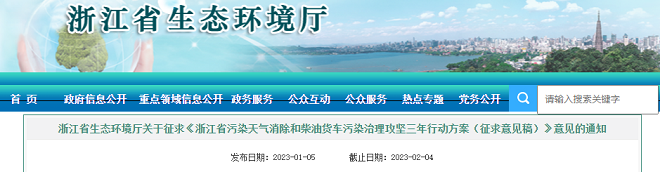1月5日,浙江省生態環境廳發布通知,為持續深入打好藍天保衛戰,鞏固改善浙江省環境空氣質量,浙江省生態環境廳起草了《浙江省污染天氣消除和柴油貨車污染治理攻堅三年行動方案(征求意見稿)》(以下簡稱《方案》),擬會同省級相關部門聯合印發實施,現向社會公開征求意見。