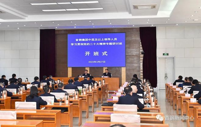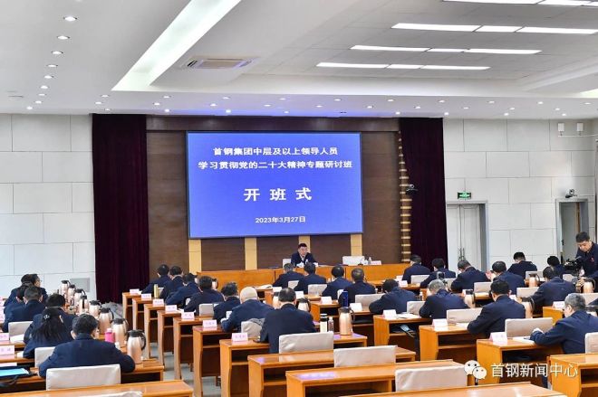 3月27日,首鋼集團中層領導人員學習貫徹黨的二十大精神專題研討班在黨校開班。首鋼集團黨委書記、董事長趙民革強調,要進一步深入學習領會習近平新時代中國特色社會主義思想,深入學習領會黨的二十大和二十屆一中、二中全會精神,深入學習領會全國兩會精神,切實提高用黨的創新理論武裝頭腦、指導實踐、推動工作的本領和水平,為落實好全年任務、打好高質量發展基礎收官戰、推動首鋼高質量發展奠定更加堅實的思想基礎,為推動首都高質量發展貢獻首鋼力量。首鋼集團黨委副書記邱銀富主持會議,首鋼集團中層及以上領導人員學習貫徹黨的二十大精神專題研討班學員、人才開發院(黨校)骨干教師約240人參加。