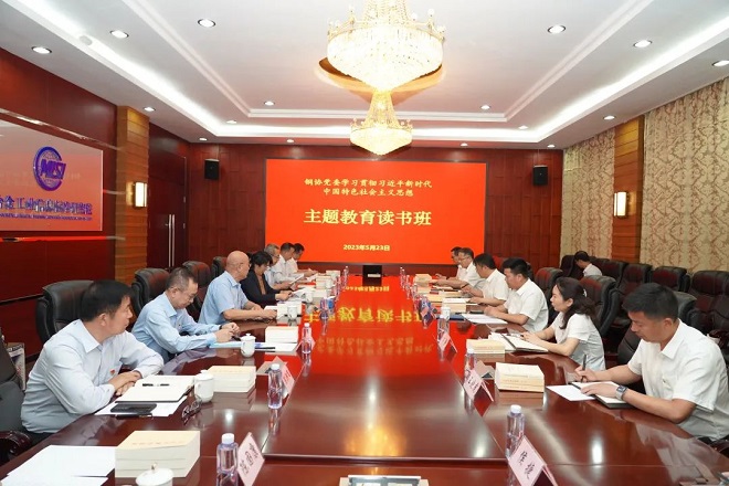 為豐富主題教育讀書班學習形式,提升學習效果,5月23日下午,鋼協黨委學習貫徹習近平新時代中國特色社會主義思想主題教育讀書班在冶金工業信息標準研究院(以下簡稱信息標準院)舉行。讀書班采取領學領讀和交流研討的形式,鋼協黨委領導班子成員、信息標準院黨委成員、鋼協第四巡回指導組同志共同研讀習近平總書記重要著作的原文,讀原著學原文悟原理,理論聯系實際、結合自身工作進行了交流研討,提出了加強和改進工作的思路和方法,努力做到學以致用,知行并進。