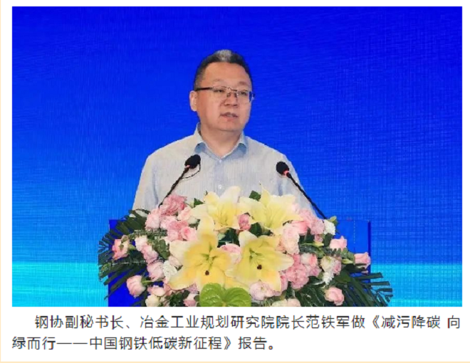 河鋼集團(tuán)副總經(jīng)理李毅仁做《河鋼全速領(lǐng)跑鋼鐵綠色發(fā)展新賽道》報(bào)告。