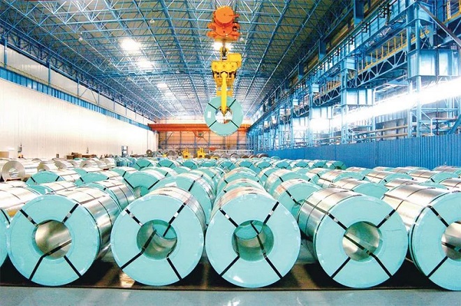 鋼鐵是制造強國建設的重要基石。鞍鋼集團聚焦鋼鐵主業,生產多種優質鋼材,努力筑牢實體經濟根基。圖為鞍鋼集團生產的優質鍍鋅板整裝待發。 鞍鋼集團供圖