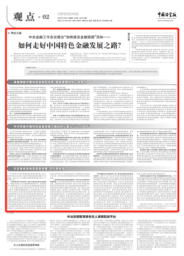 2023年中央金融工作會(huì)議首次用“八個(gè)堅(jiān)持”系統(tǒng)闡述了中國(guó)特色金融發(fā)展之路的精髓要義,明確了中國(guó)特色金融發(fā)展之路應(yīng)該“如何看”“如何干”,對(duì)走好中國(guó)特色金融發(fā)展之路具有重要影響。