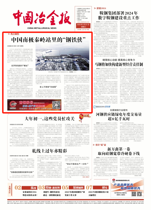 2月7日,龍年春節前夕,中國南極秦嶺站建成并投用。中共中央總書記、國家主席、中央軍委主席習近平致信祝賀,“中國南極秦嶺站的建成,將為我國和全世界科學工作者持續探索自然奧秘、勇攀科學高峰提供有力保障”,并向廣大極地工作者致以誠摯問候和美好的新春祝福。學習總書記的賀信,鋼鐵人倍感自豪,備受鼓舞。因為在南極這座鋼結構建筑里,鋼鐵力量“身藏其中”。