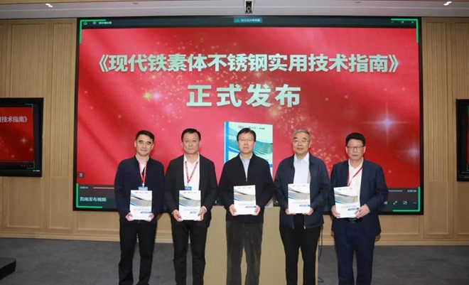 圖為《現(xiàn)代鐵素體不銹鋼實(shí)用技術(shù)指南》發(fā)布儀式