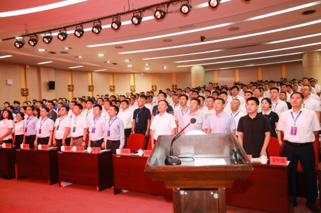 在開幕式上,初賽第一名、天津鋼管制造有限公司職工邢會軒代表參賽選手宣誓。河鋼集團唐鋼公司職工鄭久強代表全體裁判員宣誓。